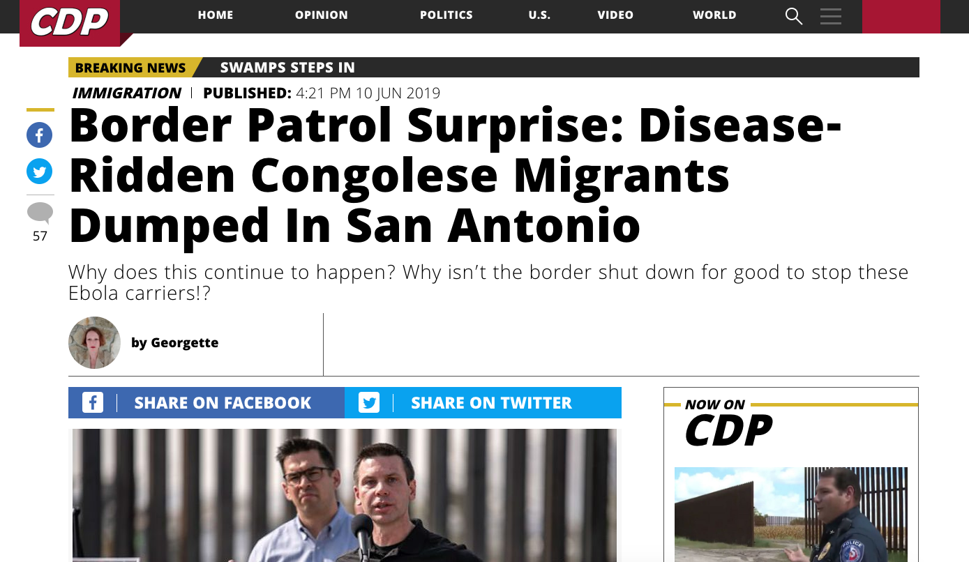 Big League Politics, "Texas Medical Professional: Migrants Quarantined with UNKNOWN Disease, 10-Year Old Girl Found With 20 Types of Semen In Her," June 26, 2019
